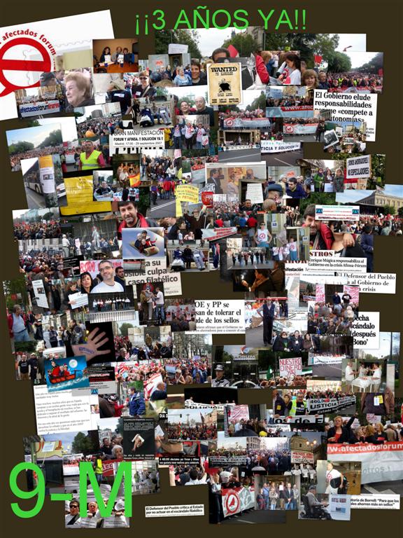 El próximo 8 de Mayo y coincidiendo con el cuarto aniversario de la intervención de Fórum Filatélico y Afinsa, se convocará una gran manifestación en Madrid en la que de nuevo se reclamará una solución definitiva al “medio millón de dramas familiares” generados por causa de la irresponsabilidad de los poderes públicos durante los veintisiete años de actividad de las empresas y los cuatro que ya han transcurrido desde el 9 de Mayo de 2006.